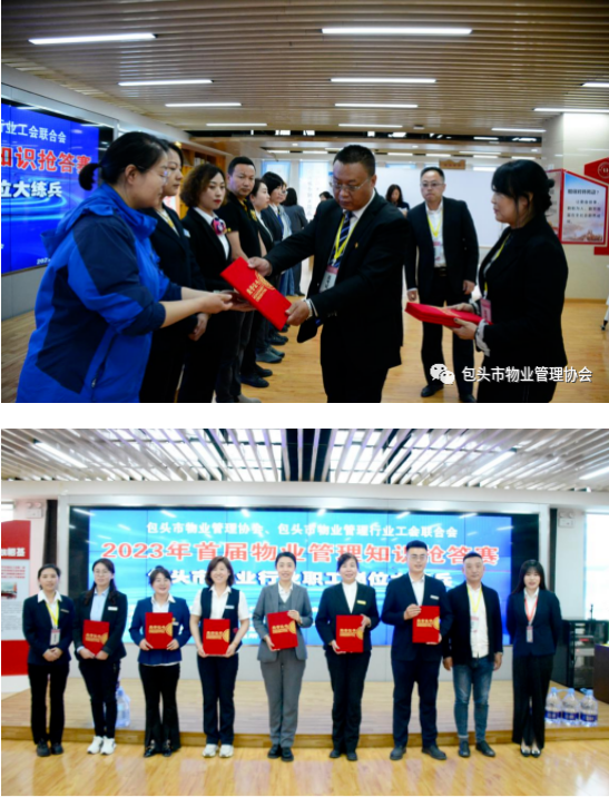 为了全面贯彻落实习近平总书记对技能人才工作的重要指示精神,切实提升包头市物业管理行业从业人员基础知识掌握能力,展现物业服务人员专业形象和精神风貌,由包头市物业管理行业工会联合会主办、包头市物业管理协会承办、包头市稀土开发区工会协办的“包头市首届物业管理知识抢答赛”于5月10日下午进入决赛。